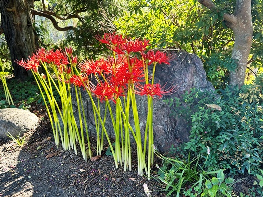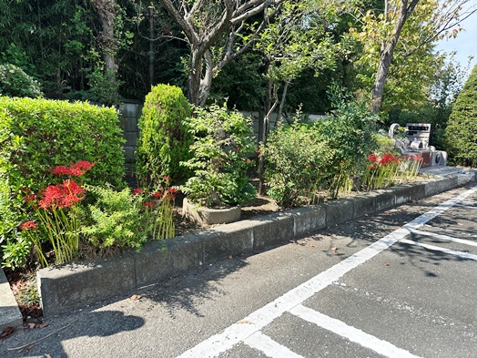 | 秋彼岸に入り、曼珠沙華が咲きはじめ、今、満開となっています。今年は、例年以上に境内のあちこちで芽が出ています。 |