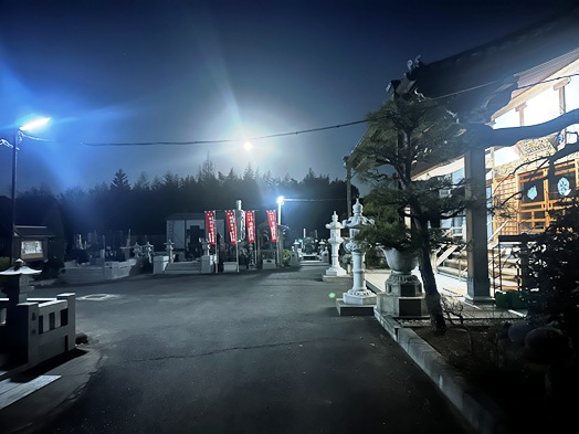 | 大晦日の日は日中とても穏やかであたたかでしたが、夕方から風が強くなりました。冷たい北風の中、除夜の鐘となりました。午前0時15分から大般若祈祷会を行い、檀信徒の皆様の無病息災と今年一年の泰平を祈願致しました。 また、大般若祈祷会終了後、朝課を行い、2名の方が最後まで朝課を聴いていてくれました。ありがとうございました。 |