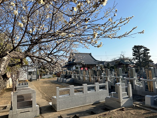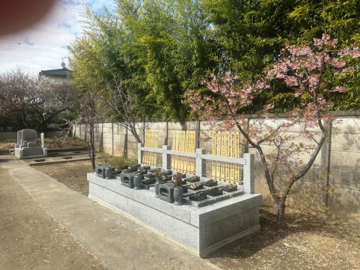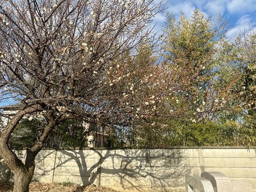 | 樹木葬墓所の周りには、春を感じさせる木々を植樹しました。白梅の開花からはじまり、河津桜、ユキヤナギ、アンズと開花のバトンが渡され、ソメイヨシノのつぼみも膨らんできました。 |