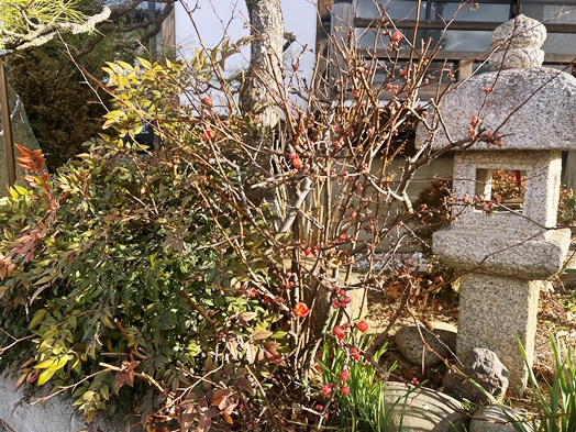 | 毎年、この時期に見つけた小さな春をご紹介しています。境内の白梅や紅梅、そしてボケけの花が咲きはじめました。 昨年は立春を過ぎた2月7日にお知らせしていました。一昨年は1月24日に白梅が咲きはじめたことをお知らせしました。だんだんと寒い冬になっているのでしょうか。去年は3月3日が初めての積雪でしたが、今年はもう2回も積雪になっています。寒さが続いていますが、自然はだんだんと春に向かっているようです。 |