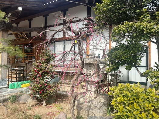 | 今日から1週間後は2月28日。翌日はもう3月です。 今年の春彼岸は、3月17日(火)から23日(月)の1週間です。本堂前のしだれ梅も咲きはじめてきました。1ヶ月後の春彼岸には、もっといろいろな花が楽しめそうです。 |